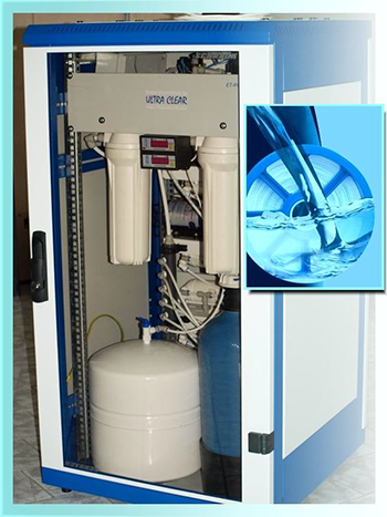 Ultraclear device does not contain strong acid and strong base resins, instead raw water is being treated with reverse osmosis (after adequate pretreatment) thus demineralizing raw water with 99% efficiency. After the reverse osmosis, mixed bed resin or electrodeionizator system is installed, that further reduces the electrical conductivity to the level of ultra-pure water.
